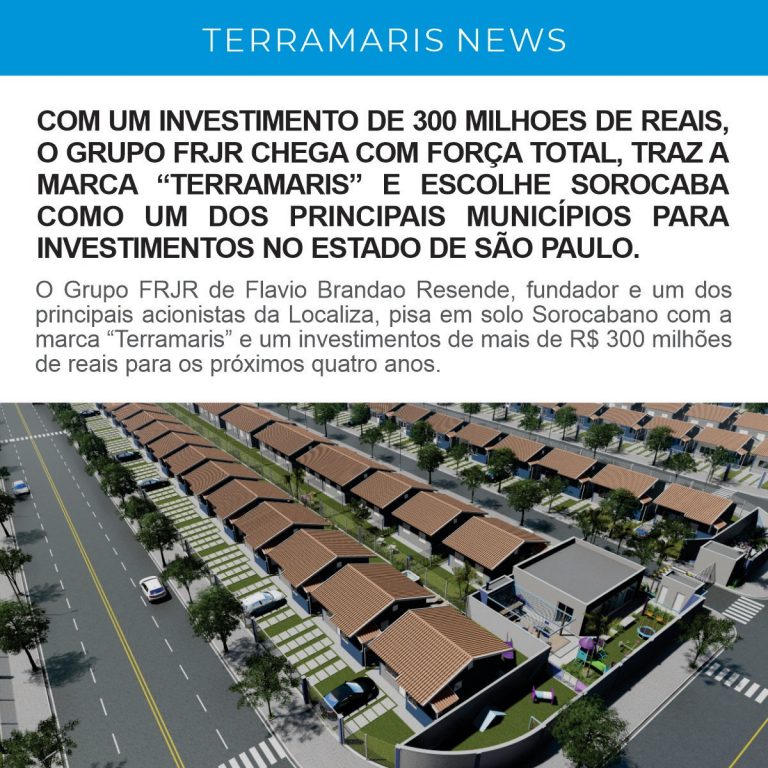 Com um investimento de 300 milhões de reais, o Grupo FRJR traz a marca “Terramaris” e escolhe Sorocaba para investimentos no estado de São Paulo....