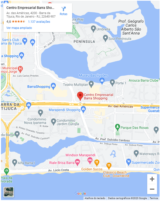 Av. Das Américas, 4200, Centro Empresarial Barra Shopping, bloco 7, sala 108 , Ala B , edifício Miami - Barra da Tijuca - RJ